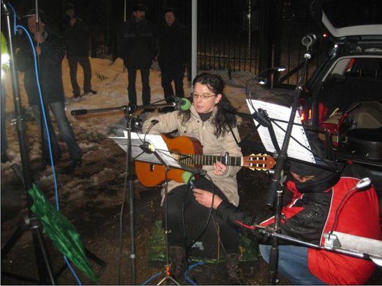 Anja König singt bei Mahnwache AKW Isar 1 am 6.Dezember 2010